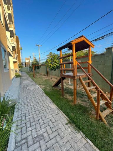 Apartamento com 2 quartos com suíte e lazer completo no Eusébio! - Condomínio Gran Village Eusébio III - Localizado na Avenida Santa Cecília, nº 1967 - bairro Guaribas Eusébio/CE, em região de fácil acesso ao centro do Eusébio, próximo a comércios, escolas e serviços. O imóvel possui aproximadamente 46,52m², com varanda, sala, 2 quartos (sendo 1 suíte), cozinha e área de serviço. Piso TÉRREO. O condomínio oferece estrutura completa de lazer e conveniência: portaria, 1 vaga de garagem, campo gramado, quadra de Beach Tênis, espaço fitness, coworking, salão de jogos, playground, pet place, salão de festas, piscina e redário. Aluguel: R$ 1.250,00 Condomínio: R$ 300,00 (valor sujeito a alteração em assembleia) Necessário 2 Cauções. Para mais informações e agendamento de visita, entrar em contato com o nº (85) 99180.0830.